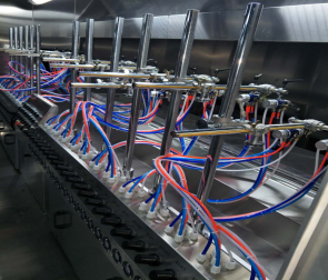 地軌式自動噴涂線介紹地軌式自動噴涂線也叫固定噴槍噴涂線或spindle自動噴涂線,原理就是把噴槍固定起來,根據(jù)工藝要求進行噴涂。其功能集地面自動輸送線,固定自動噴涂,自動烘干T等一體化系統(tǒng),并結(jié)合無塵凈化車間,恒溫控制,廢氣處理系統(tǒng)組成,可以根據(jù)需求設(shè)計兩涂兩烤,三涂三烤,四涂四烤,再加上UV固化設(shè)備。地軌式自動噴涂線特點與優(yōu)勢:1.起到靜電除塵,噴涂、烘干、UV固化自動噴涂流水的功能,適合批量連續(xù)生產(chǎn),產(chǎn)量高,噴涂均勻。2.輸送鏈條與軌道接觸點配置軸承,配合精準的軌道,運轉(zhuǎn)時輕快平穩(wěn)不抖動,3.靜電除塵系統(tǒng),進口高要靜電發(fā)生器,離子風嘴可上下前后機械式調(diào)節(jié),可配合產(chǎn)品大小不同而變化,加上工件自動,除塵無360度死角。4.固定式自動噴槍可用于步進是或者聯(lián)系的在線噴涂,及簡單又實用。采用工件高速自動噴涂,行程及速度可調(diào)節(jié),靈活性大,無死角。5.水簾環(huán)保噴房設(shè)計,氣流順暢潔凈,噴房室內(nèi)導(dǎo)流板機擾流板的精心配置,讓亂流遠離工件,并快速循環(huán)利用。6.UV固化室內(nèi)設(shè)都說進口等,任意調(diào)節(jié)照射距離與角度??梢匀我膺x擇燈工作數(shù)量,根據(jù)照射強度選擇,工件自動旋轉(zhuǎn)設(shè)計,保證了工件照度均勻。好了,以上就是有關(guān)地軌式自動噴涂線介紹,大家學(xué)會了嗎?